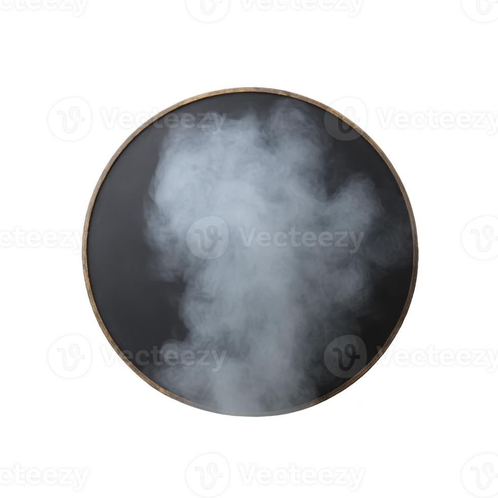 Round blackboard with wooden frame is partially covered by cloud of white smoke, creating mysterious and intriguing effect Pro PNG