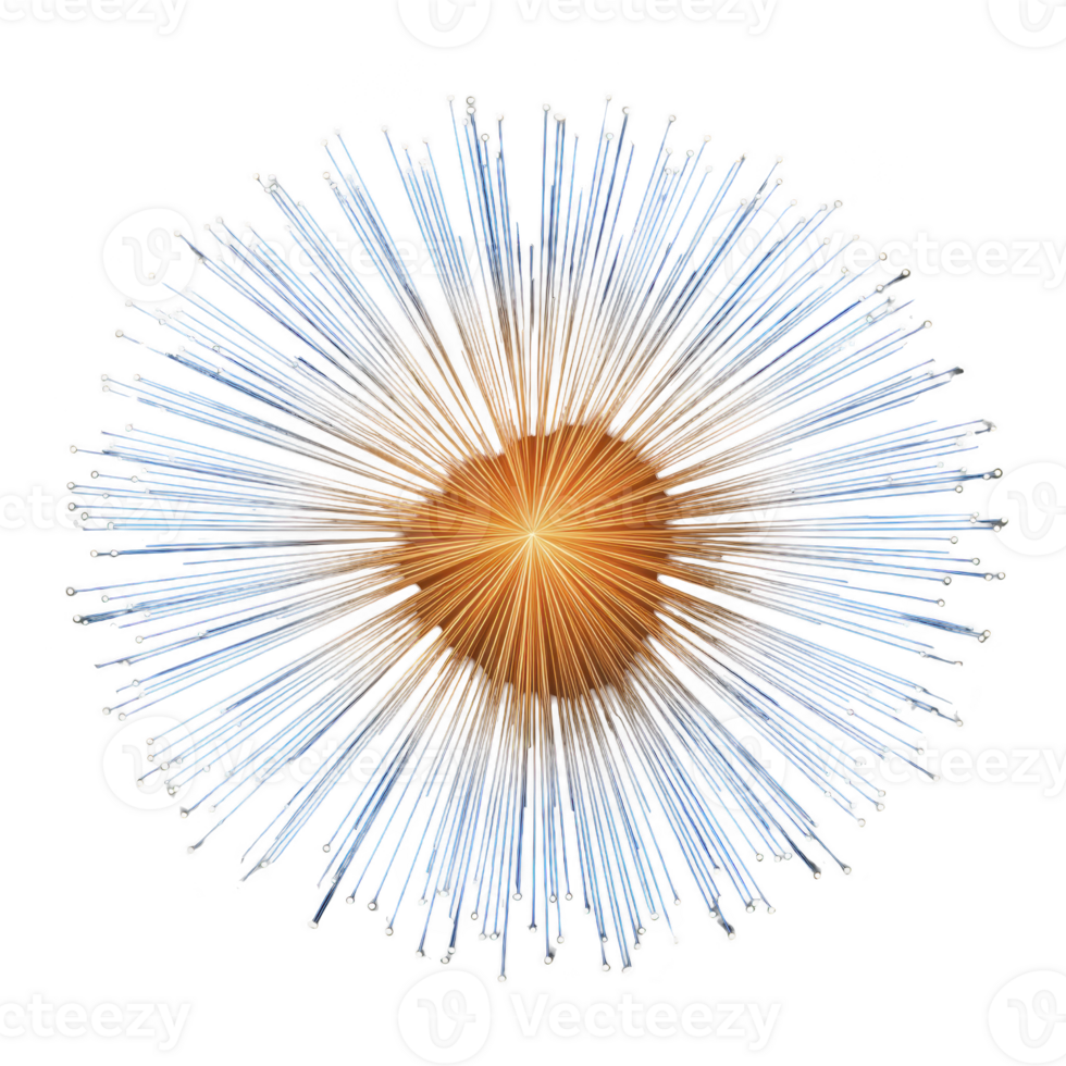 Vibrant burst of light resembling firework or abstract starburst, with radiating lines in blue and orange against transparency background, creating dynamic and energetic visual effect Pro PNG