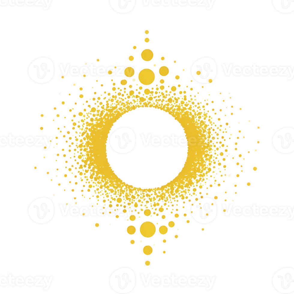 Vibrant abstract design features central black circle surrounded by burst of yellow dots, creating dynamic and energetic pattern. composition evokes sense of movement and radiance Pro PNG