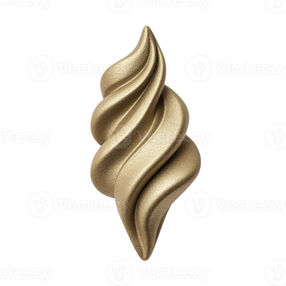 A golden, abstract, spiral sculpture with smooth, metallic texture, resembling twisted shell or soft serve ice cream, stands out against plain background. Its elegant curves create sense of movement Pro PNG