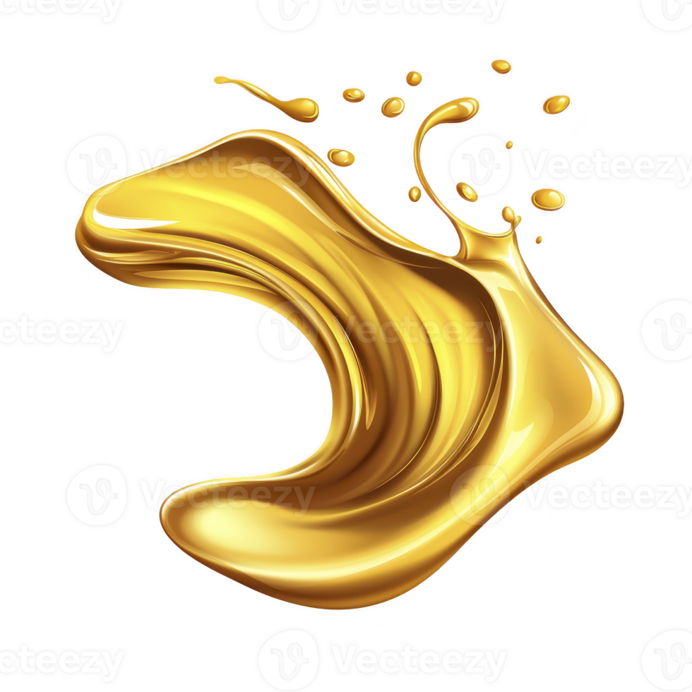 dynamic splash of golden liquid with smooth curves and droplets, creating sense of motion and luxury. shiny texture and rich color evoke elegance and opulence Pro PNG
