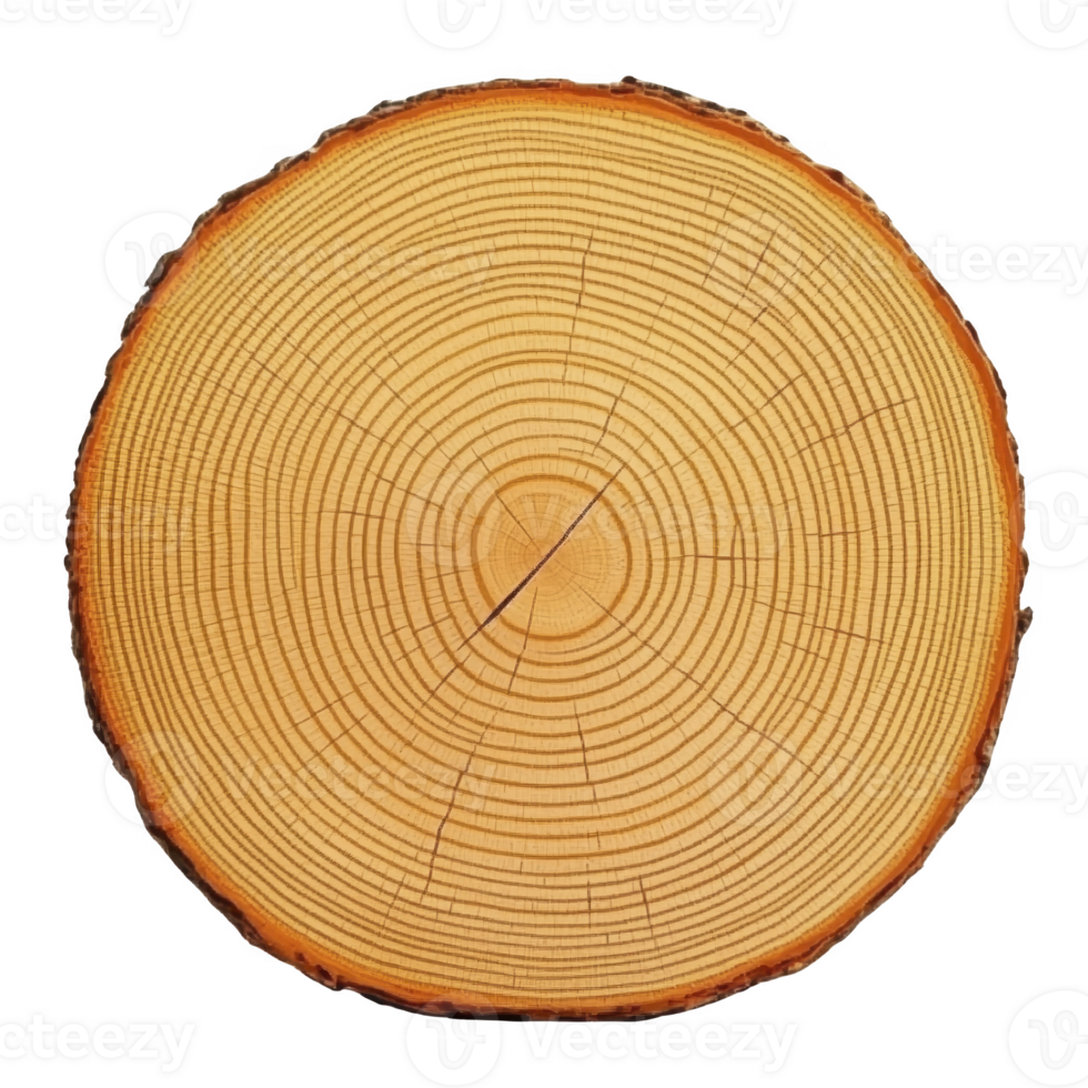 cross section of tree trunk showing detailed growth rings, indicating tree age and growth patterns. circular pattern is clear and distinct, with natural wood texture Pro PNG