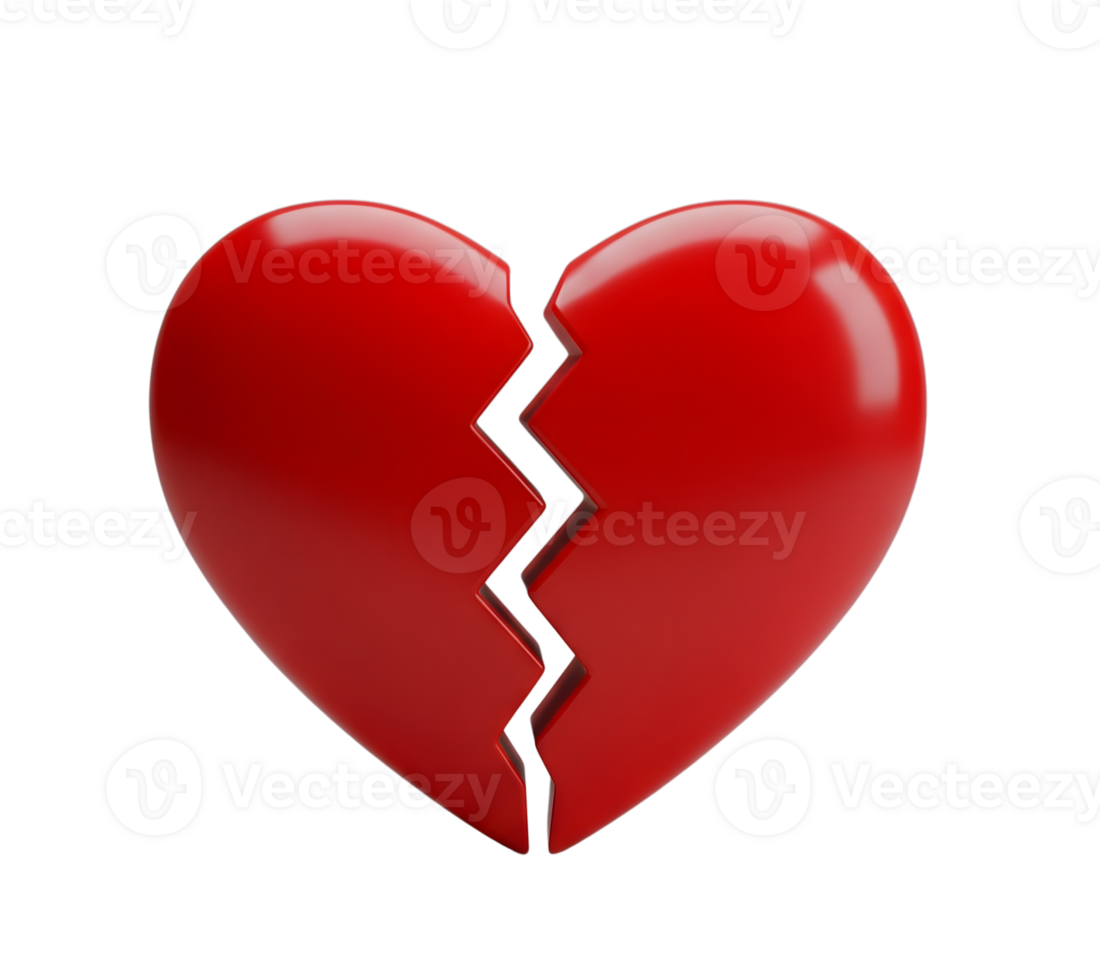 Red broken heart minimalist 3D rendering in soft and smooth renderer Pro PNG