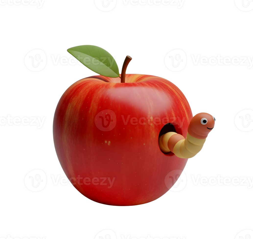 Worm in a Red Apple Minimalist 3D Rendering in Soft Smooth Renderer Pro PNG