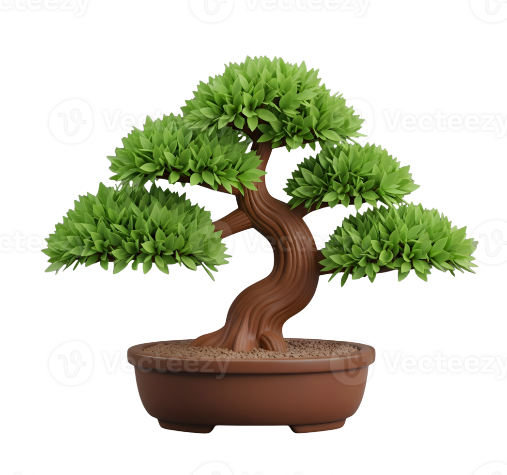 Bonsai Tree Minimalist 3D Rendering in a Soft Smooth Renderer Pro PNG