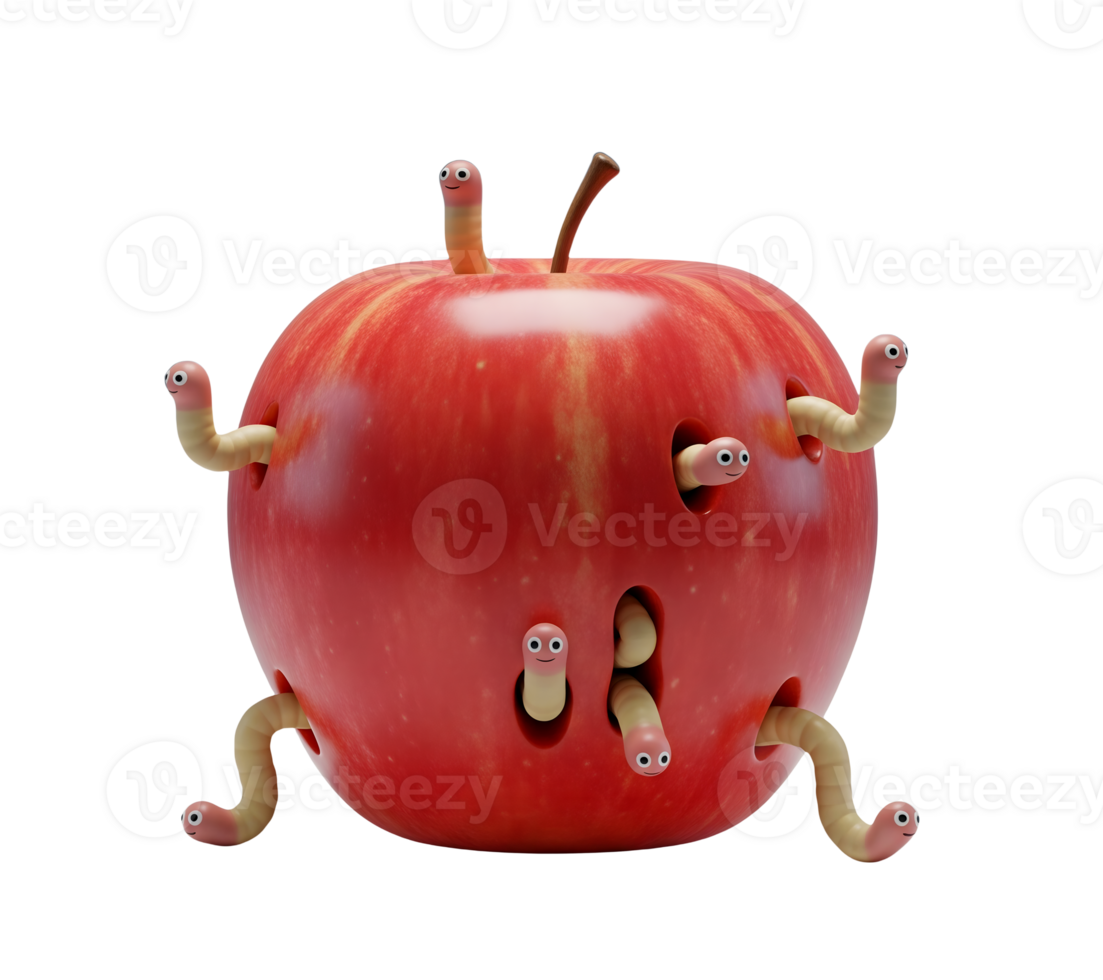 Worm in a Red Apple Minimalist 3D Rendering in Soft And Smooth Renderer Pro PNG