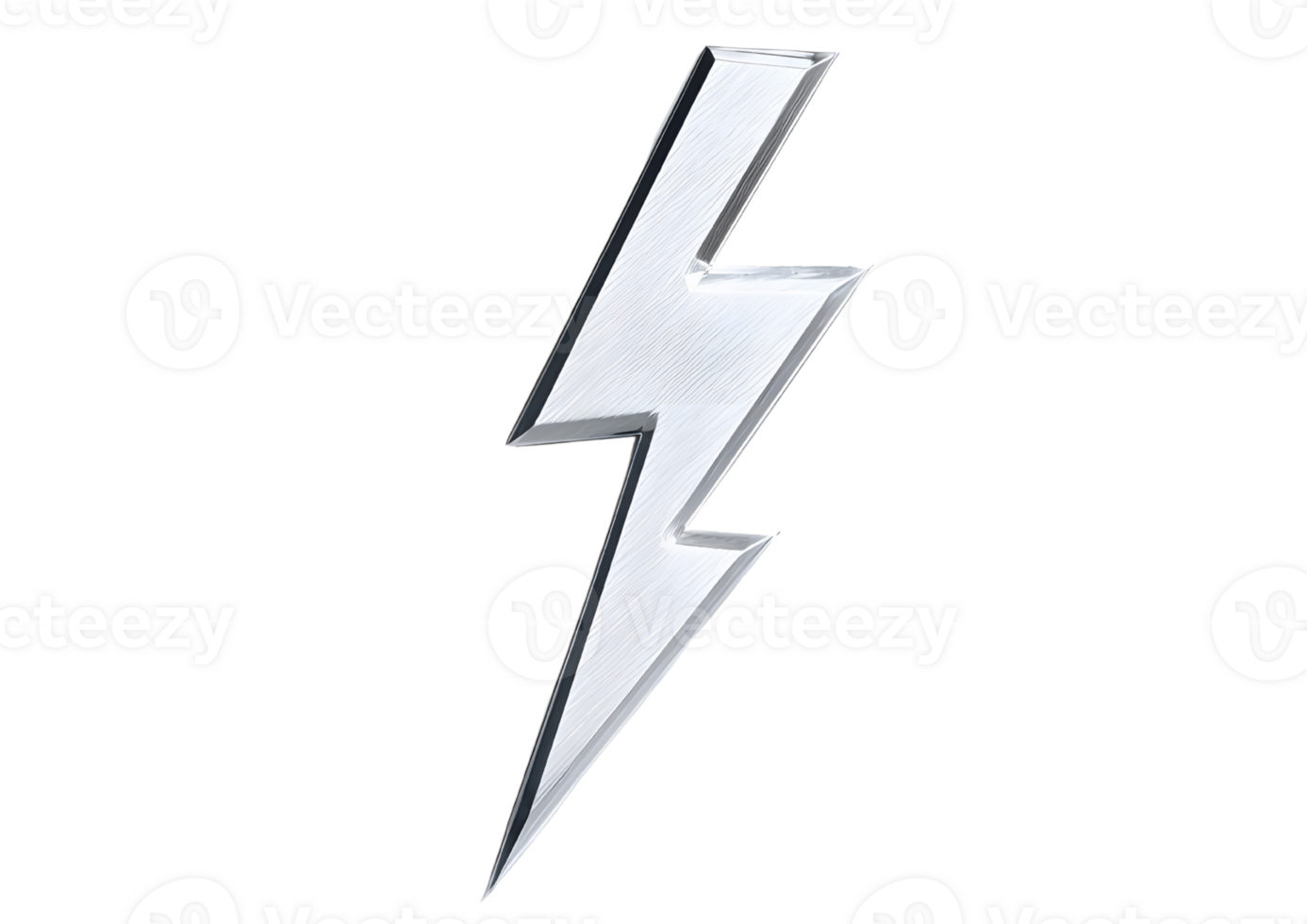 Dynamic lightning bolt striking down with a transparent background in format for graphics. Pro PNG