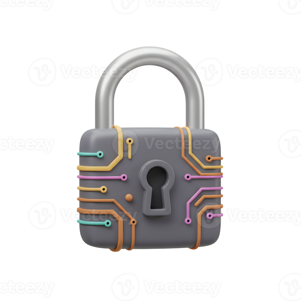 A padlock with a circuit board pattern suggests advanced security measures and is suitable for website graphics. Pro PNG