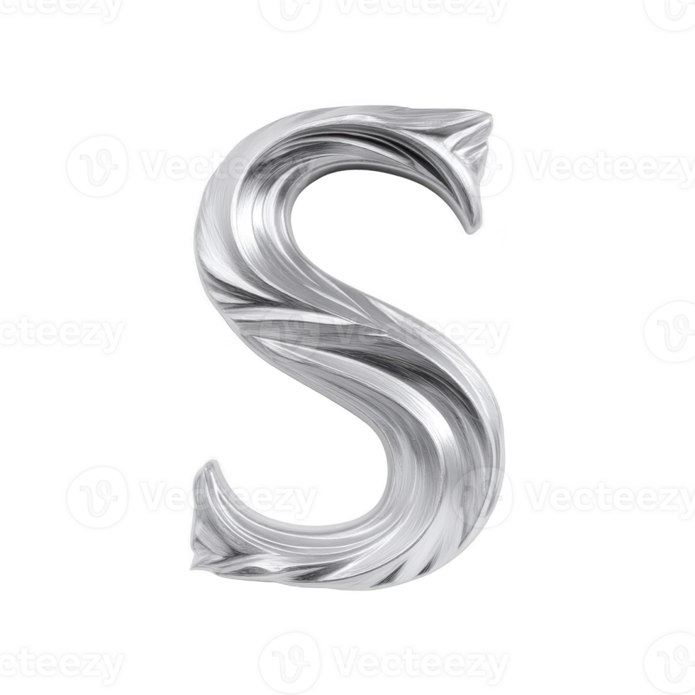 Silver metallic letter S with shiny, textured surface, isolated on transparency background. elegant design features swirling pattern, creating luxurious and modern appearance Pro PNG