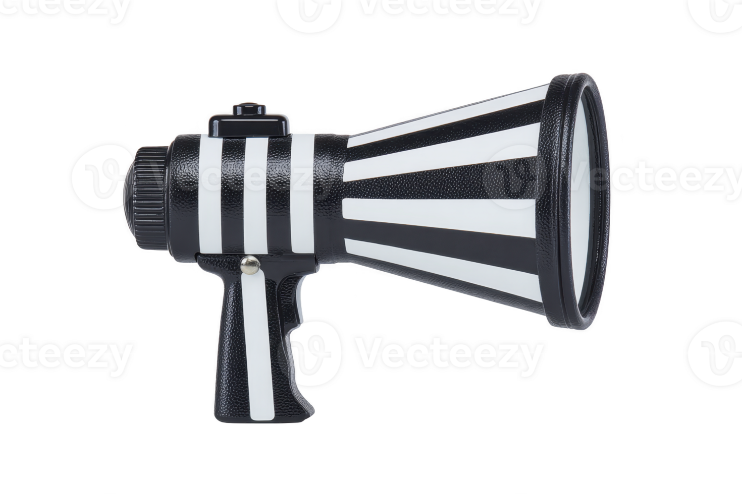 Black and white striped megaphone with handle and trigger, designed for amplifying sound, stands out with its bold pattern. device is commonly used for public announcements and events Pro PNG