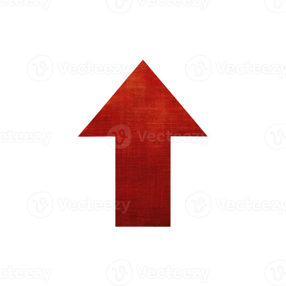 Textured red arrow pointing upwards on transparency background, symbolizing direction or progress. arrow has rustic, fabric like appearance, adding unique visual element Pro PNG