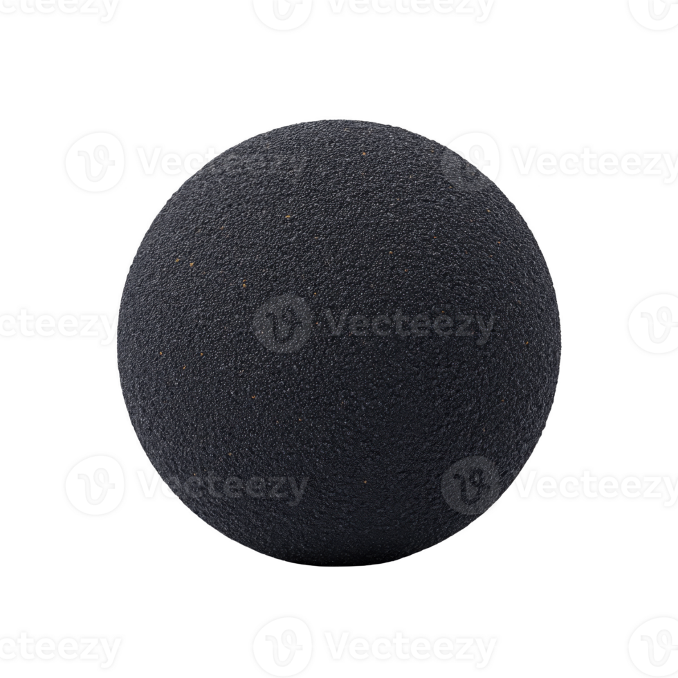 Textured black sphere with rough surface, resembling rubber or foam ball, isolated on transparency background. sphere texture adds depth and interest to its simple geometric shape Pro PNG