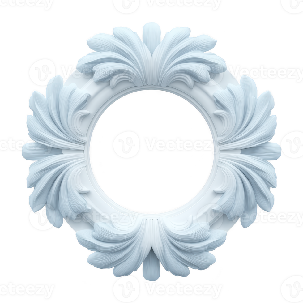 Decorative circular frame with intricate leaf patterns in soft blue hue, perfect for adding elegant touch to any design project. ornate detailing creates sense of sophistication and style Pro PNG