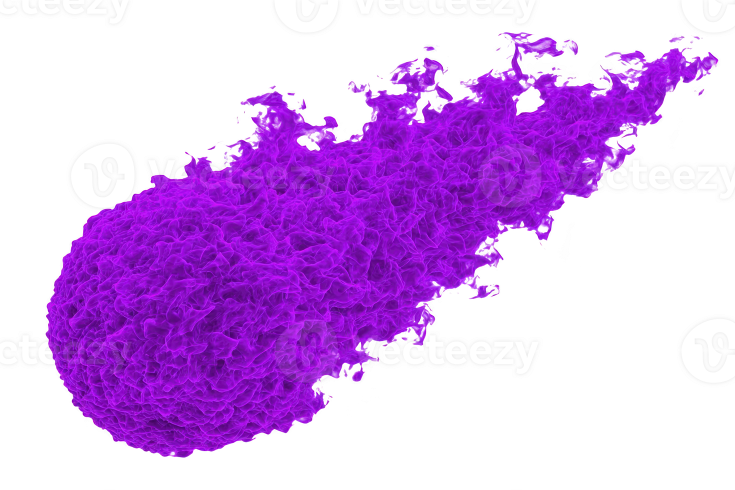 Vibrant purple abstract shape resembling comet or meteor with textured, fiery tail, set against transparent background. dynamic form suggests motion and energy Pro PNG