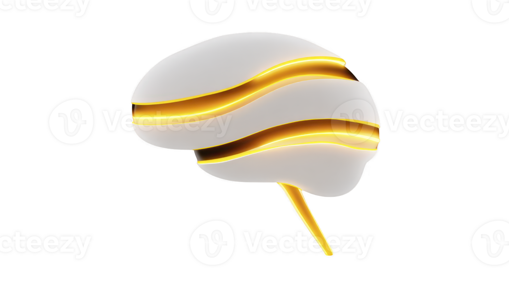 3D illustration of stylized brain with glowing yellow lines, symbolizing neural connections and innovation. smooth, white surface contrasts with vibrant lines, creating futuristic and dynamic Pro PNG