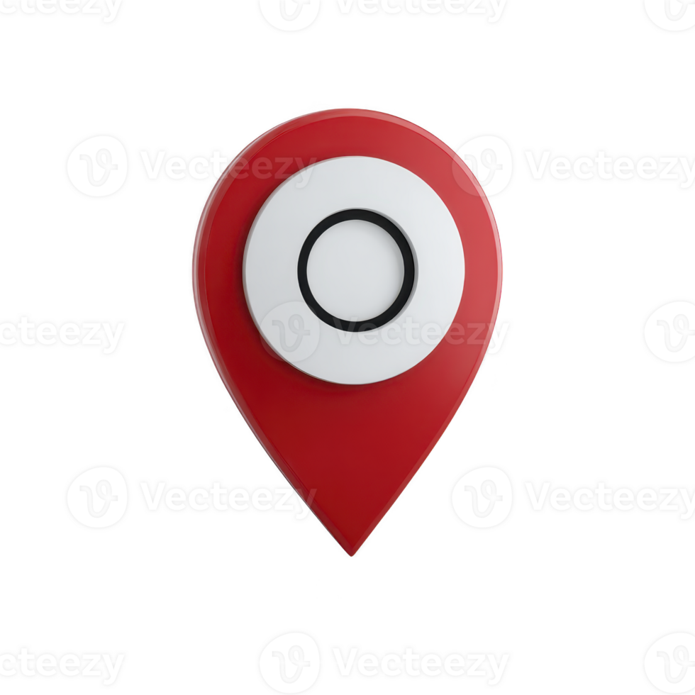 Red and white 3D map pin icon with circular design, symbolizing location or navigation, isolated on transparency background Pro PNG