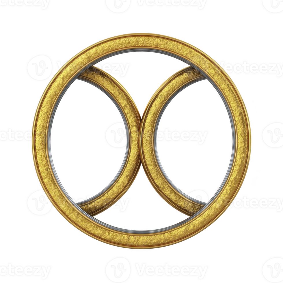 Golden circular emblem with two intersecting rings, creating symmetrical design. metallic texture and intricate detailing give it elegant and luxurious appearance Pro PNG