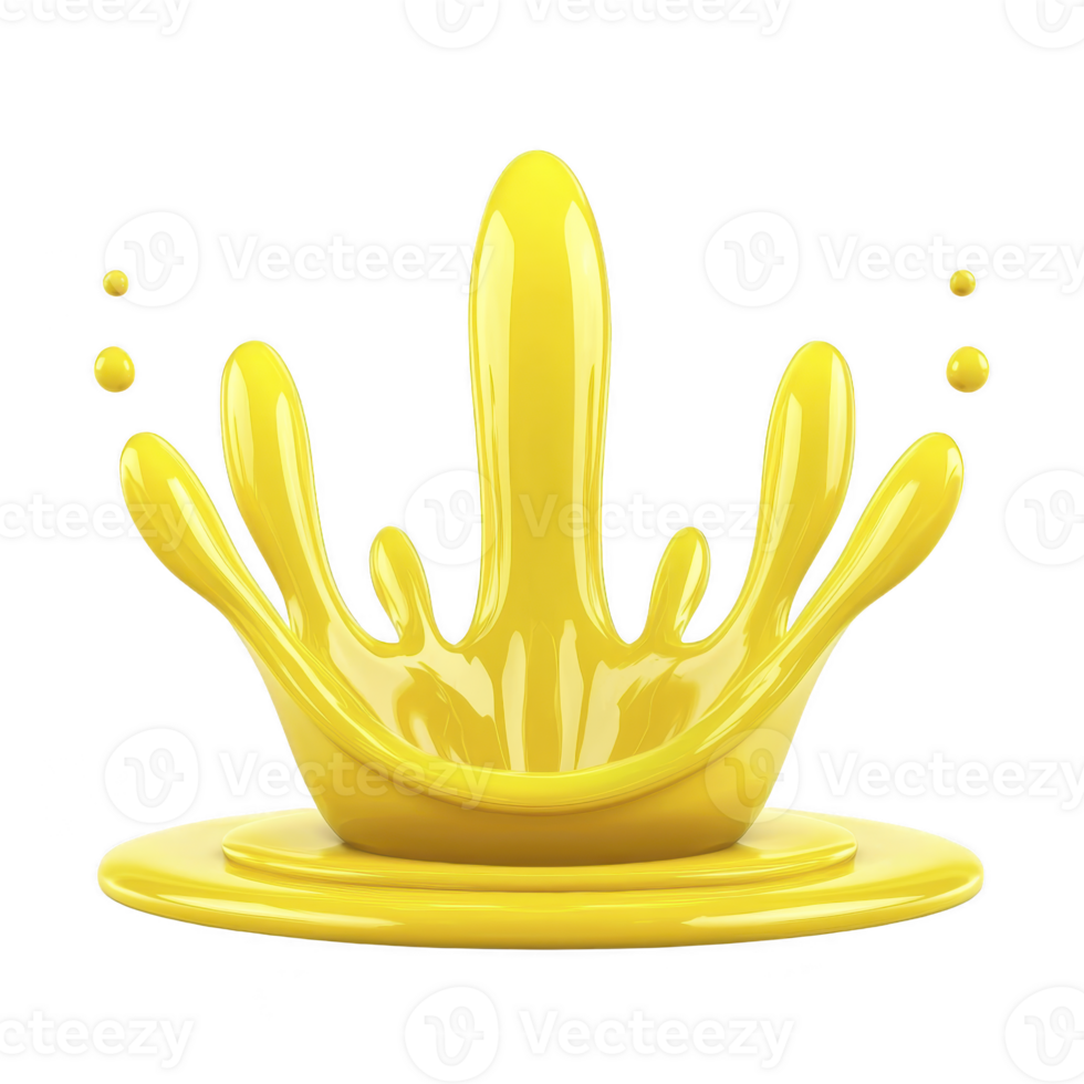 Vibrant yellow liquid splash creates dynamic and energetic visual, resembling crown shape. glossy texture and smooth curves add sense of motion and fluidity to image Pro PNG