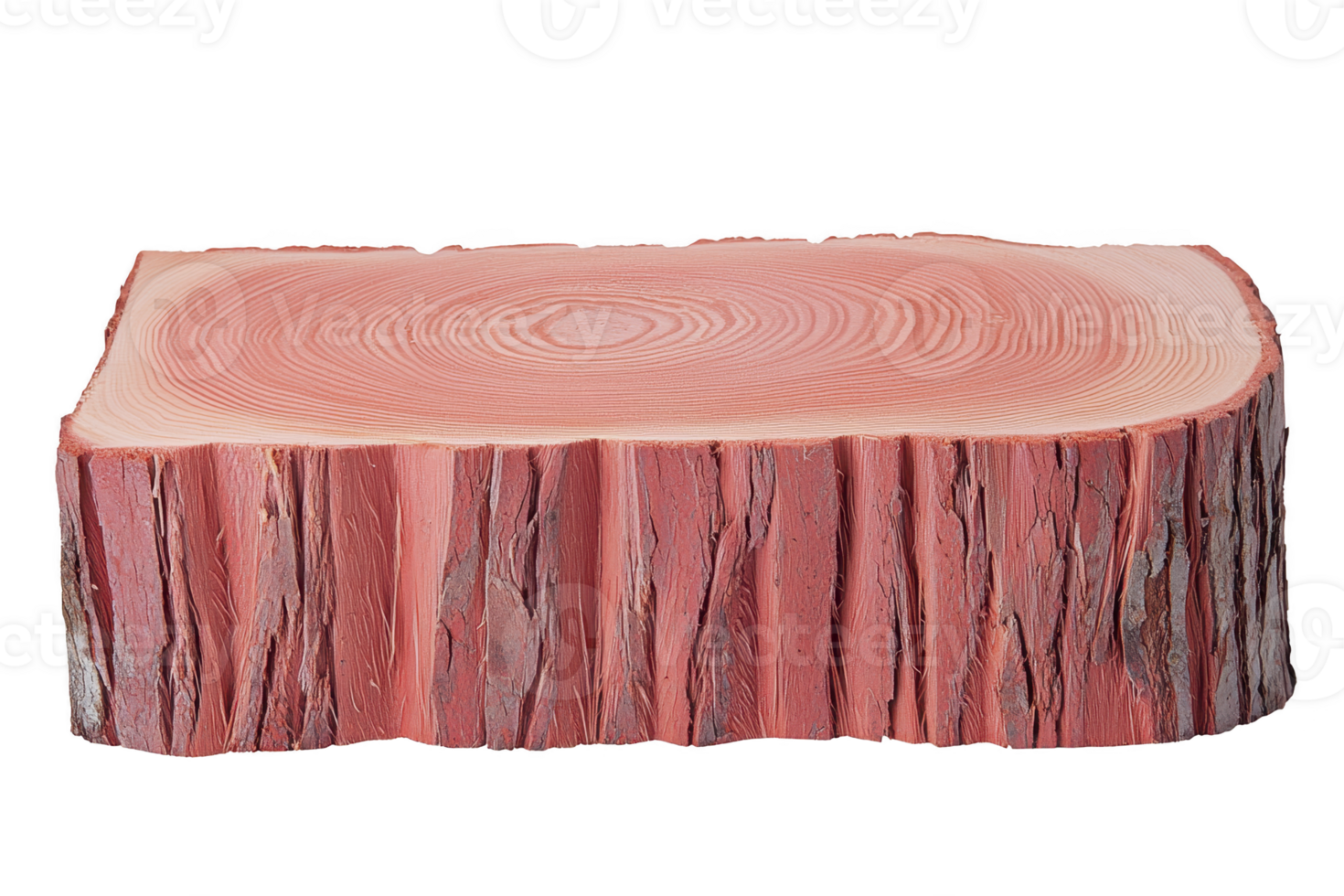 Cross section of tree trunk with visible growth rings and textured bark, showcasing natural patterns and colors. wood slice is isolated on transparency background Pro PNG