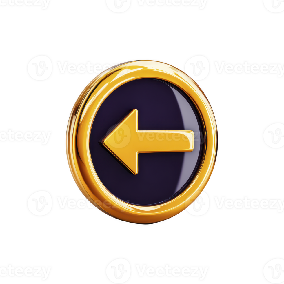 Shiny gold arrow icon pointing left is set against glossy black circular background, creating sleek and modern design. icon reflective surface adds touch of elegance Pro PNG