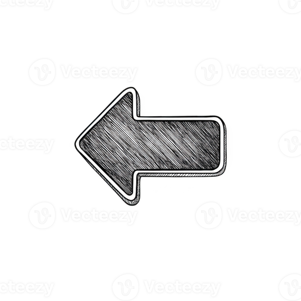 Textured black arrow pointing left on transparent background, ideal for design projects or presentations. arrow has sketch like appearance, adding creative touch Pro PNG