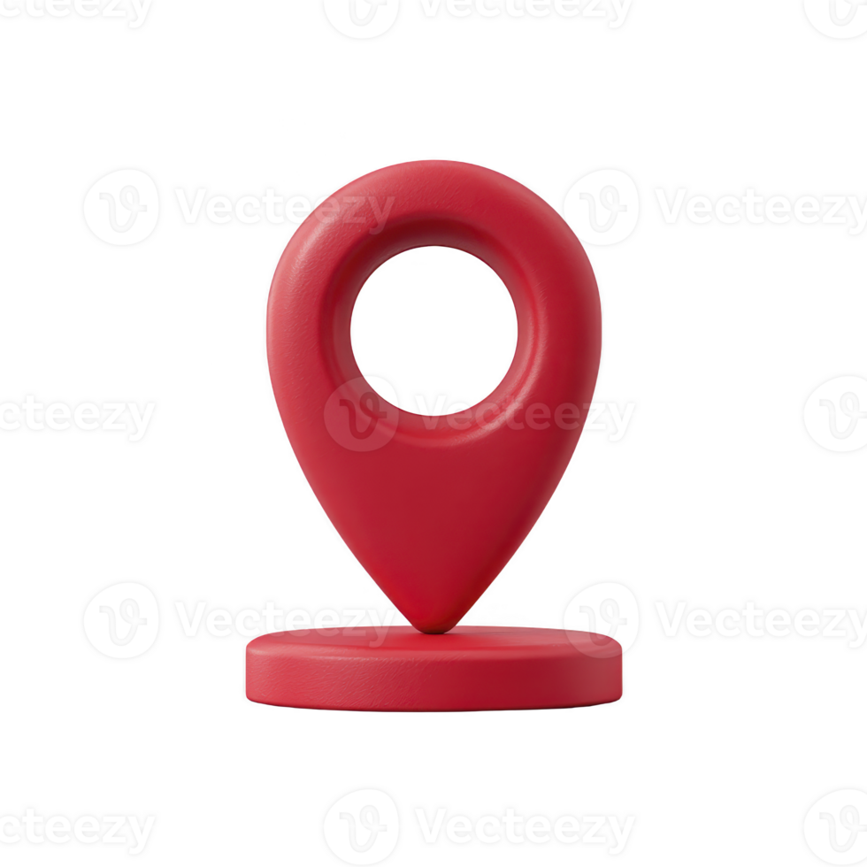 Red 3D location pin icon stands on circular base, symbolizing navigation and positioning. design is simple and modern, often used in digital maps and GPS applications Pro PNG