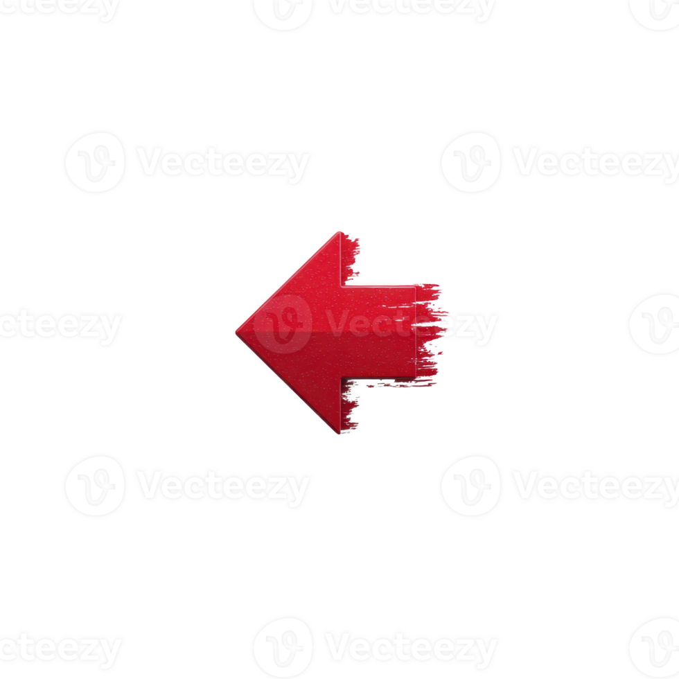 Red arrow pointing left with distressed texture, symbolizing direction or navigation. arrow rough edges add dynamic and edgy feel, making it visually striking Pro PNG
