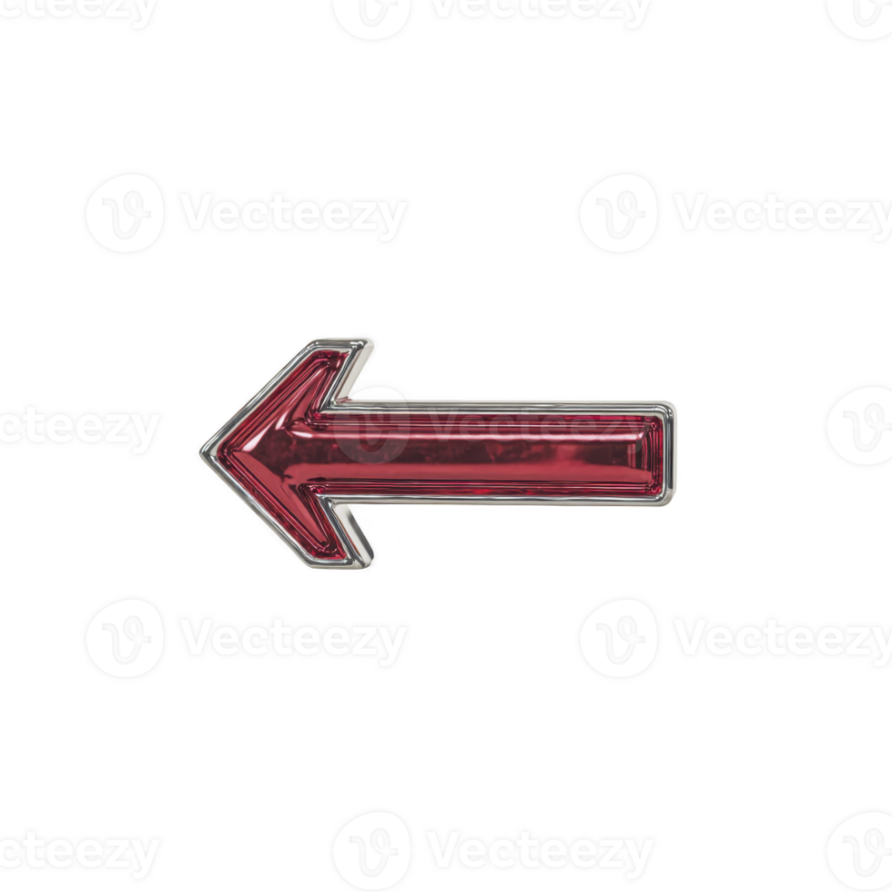 Shiny red arrow pointing left with metallic border, isolated on transparency background, conveys direction and emphasis Pro PNG