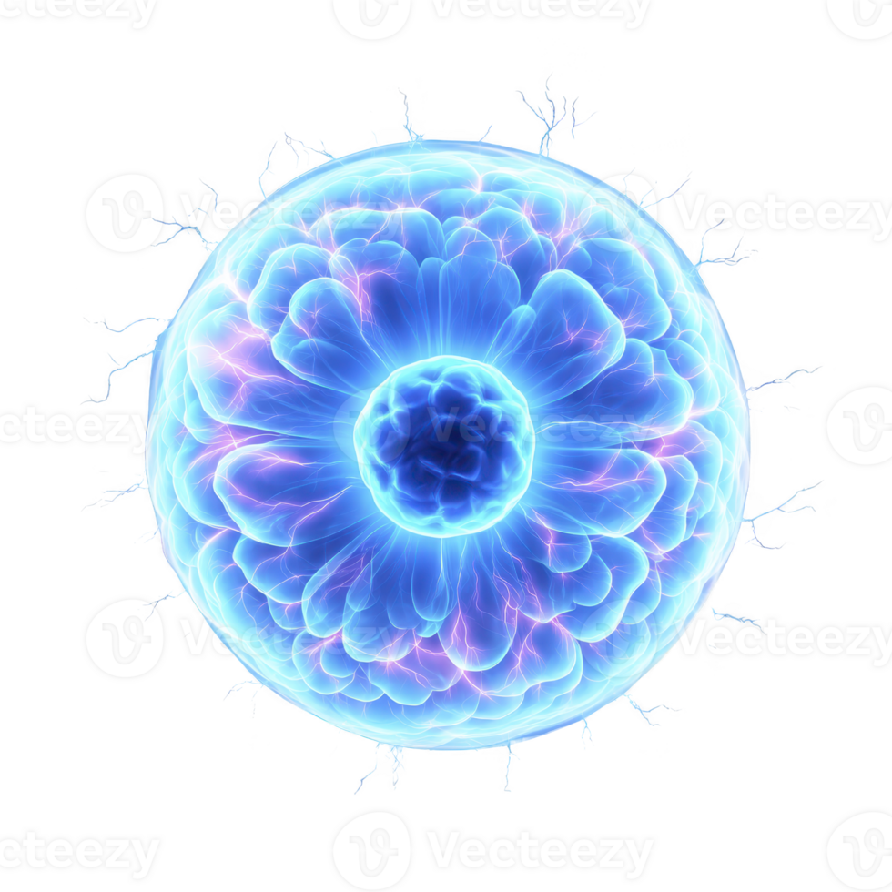 Glowing, electric blue plasma ball with intricate patterns and vibrant energy arcs radiating from its surface, creating mesmerizing and dynamic visual effect Pro PNG