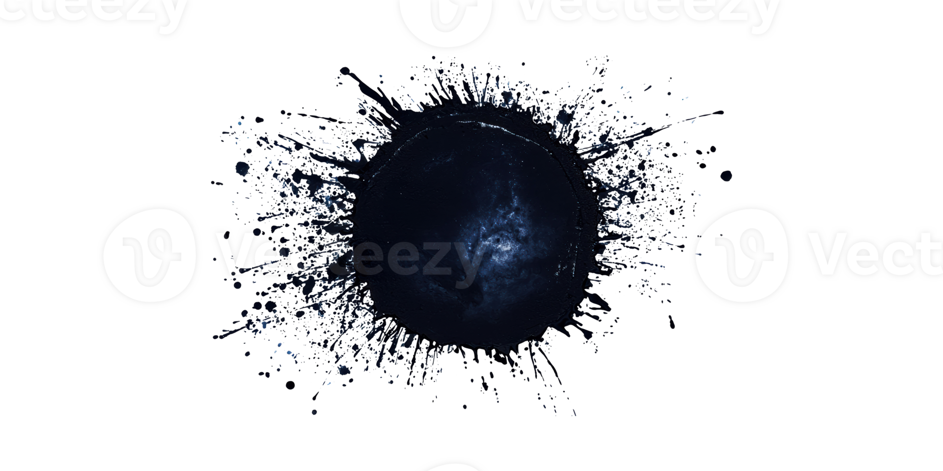 Abstract black ink splash creating circular pattern isolated on transparent background Pro PNG