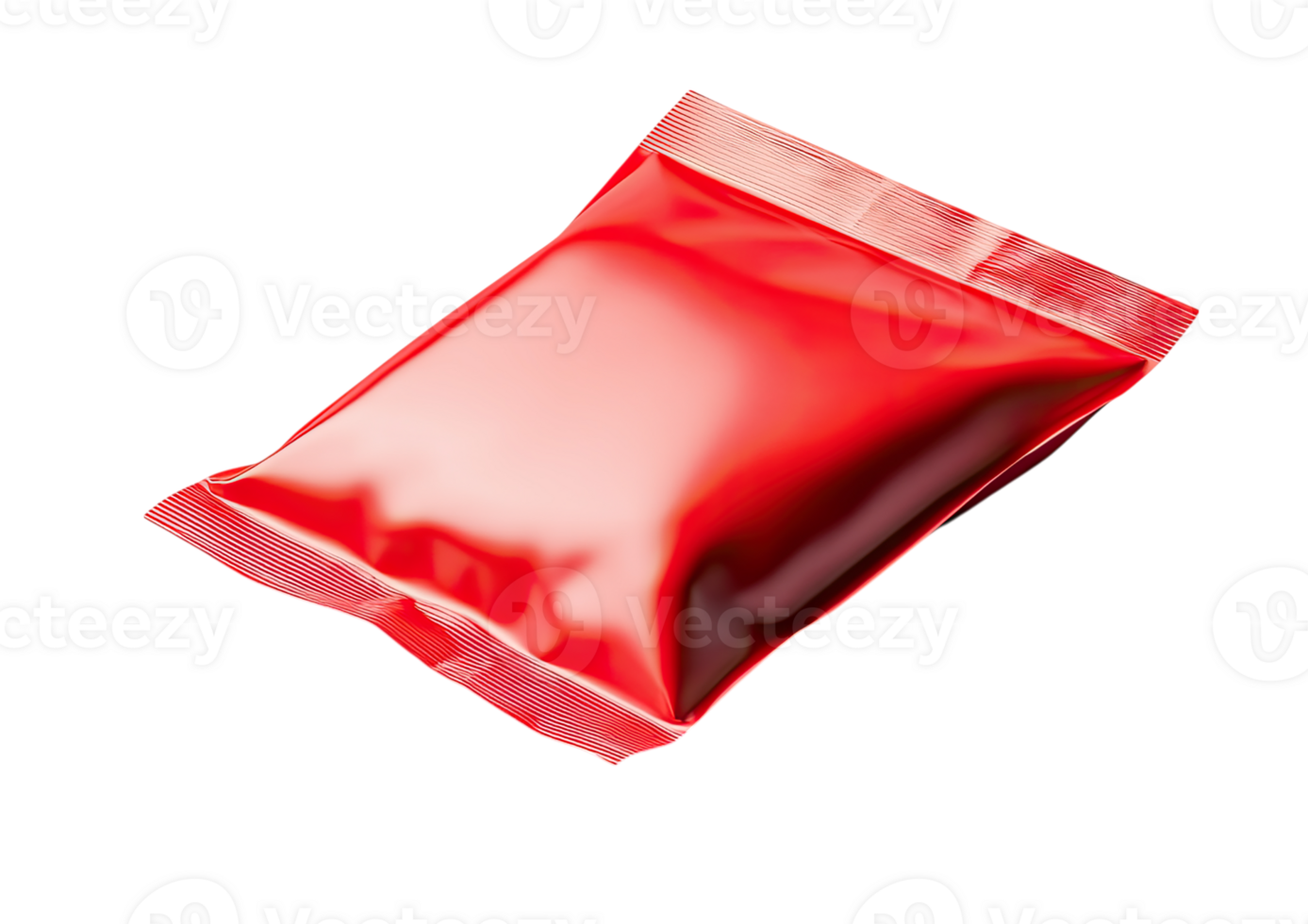 Sealed chips packet in glossy red wrapper, smooth surface with crisp shadows isolated on a transparent background Pro PNG