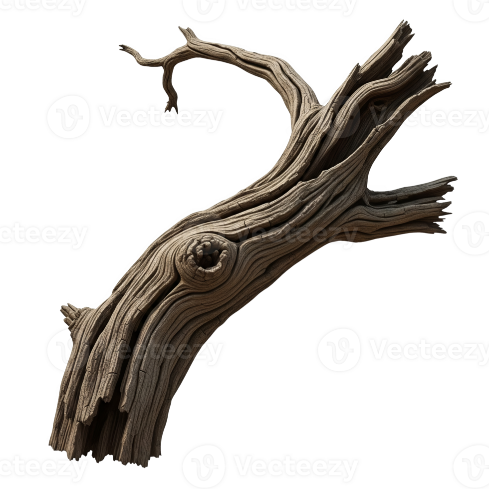 Detailed 3 D Render of a Grayish Brown Twisted Tree Branch Knots and Texture Isolated on Transparent Background isolated on a transparent background Pro PNG