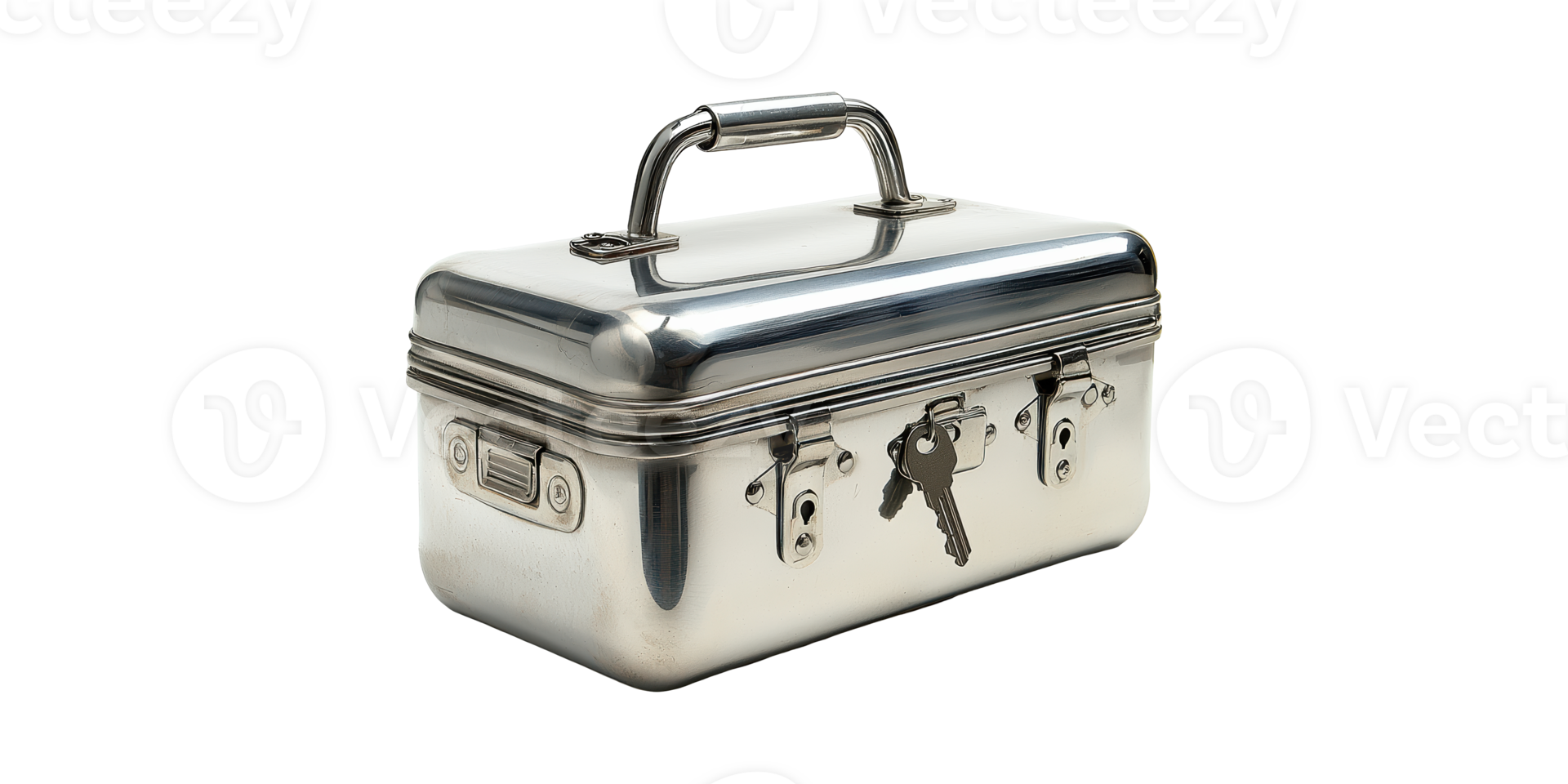 Metallic Lockbox With Keys. Secure Storage Solution For Valuables And Documents Isolated On Transparent Background Pro PNG