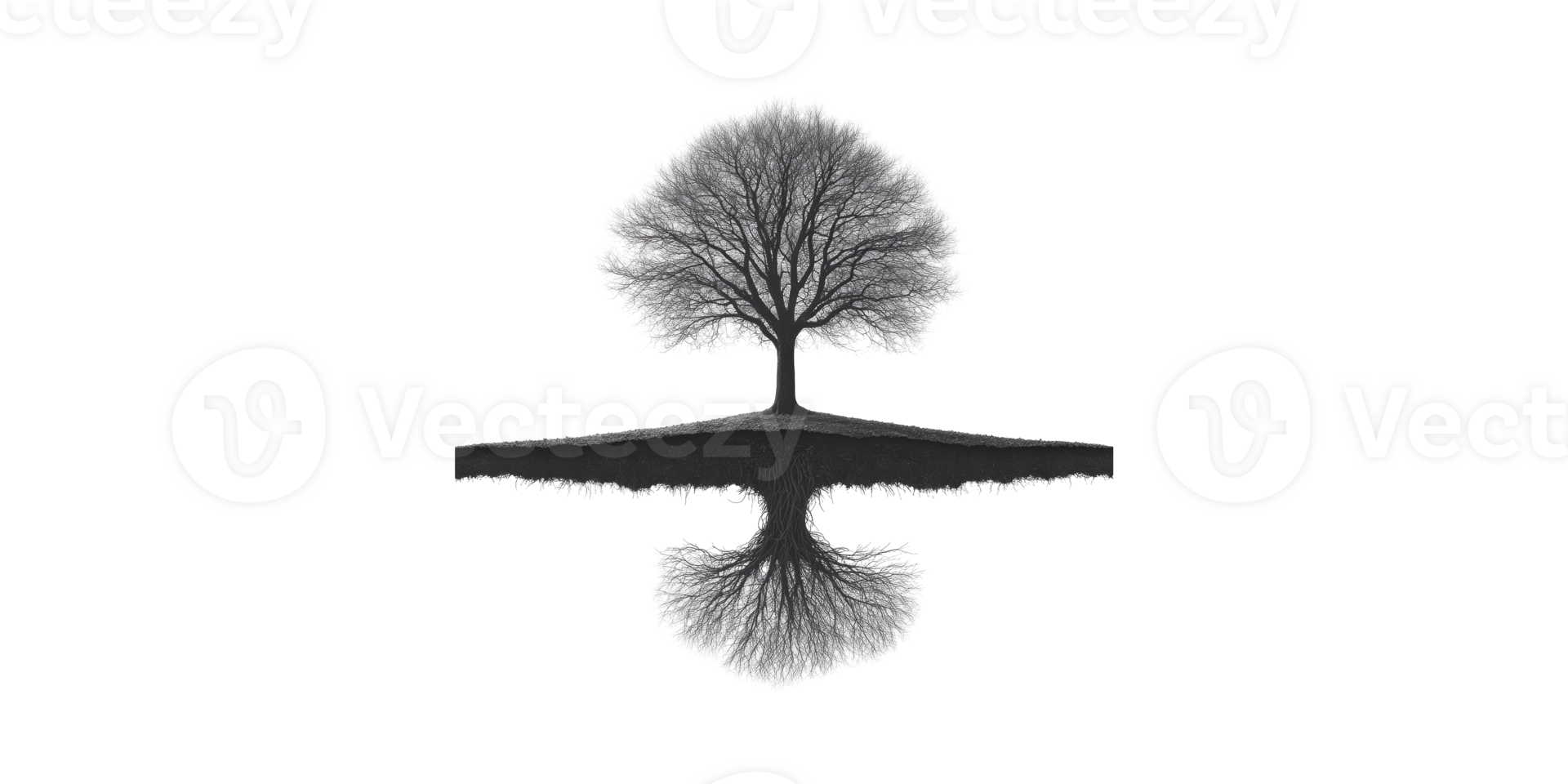 Tree With Roots Reflection In Black And. Symbolizes Balance And Connection To Nature Isolated On Transparent Background Pro PNG