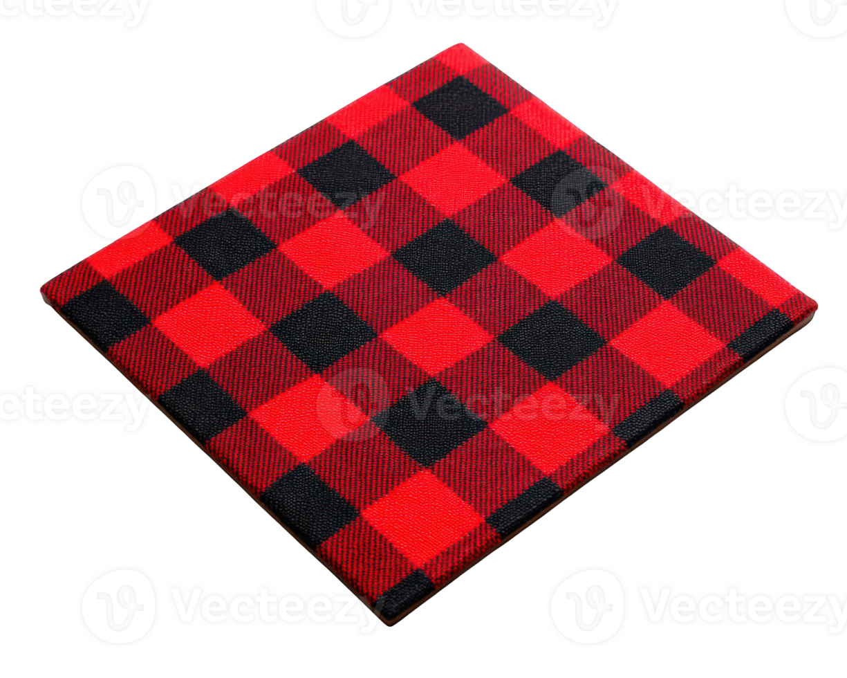 Red checkered woolen fabric patch, square textile sample, buffalo plaid pattern, isolated on transparency background, cozy and rustic style, suitable for crafts and fashion Pro PNG