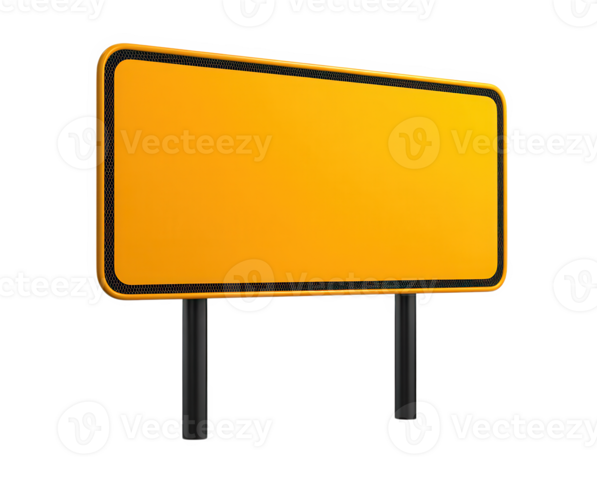 Yellow blank metal street sign with black border, isolated on transparency background, rectangular shape, empty space for text, urban object, modern design, suitable for road or traffic use Pro PNG