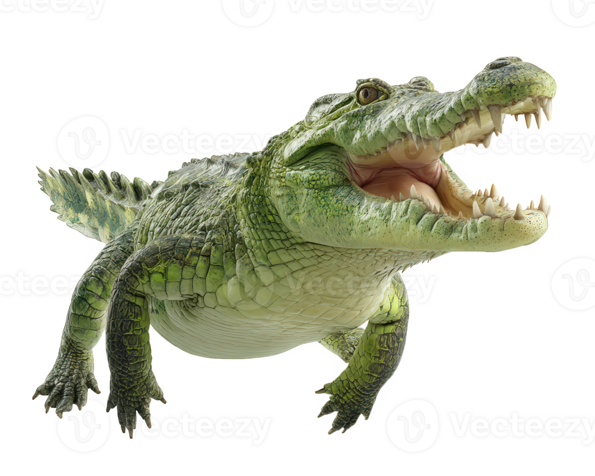 Crocodile with open mouth isolated on transparency background, showing sharp teeth and textured green scales, wild animal, reptile, aggressive expression Pro PNG