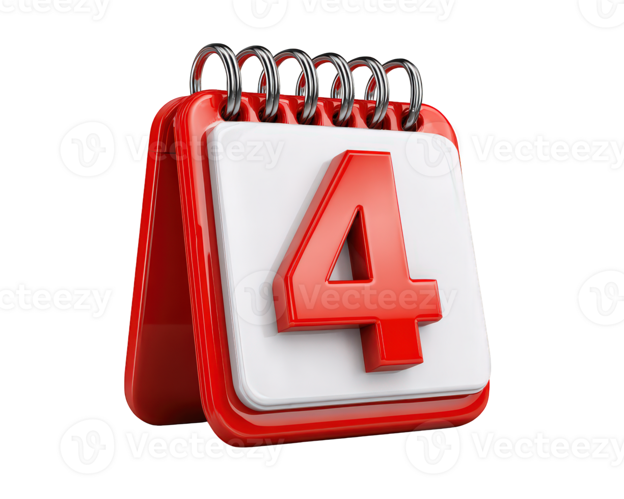 Red calendar icon with bold number four isolated on transparency background modern design 3D rendering symbolizing date schedule reminder and organization concepts Pro PNG