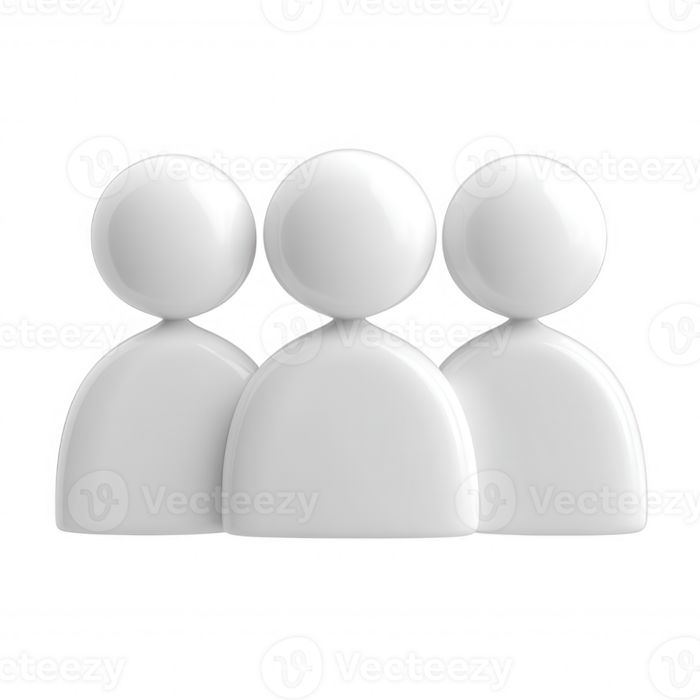 3d Three user use white abstract figures standing together, symbolizing teamwork and unity, isolated on a transparent background for versatile icon Pro PNG