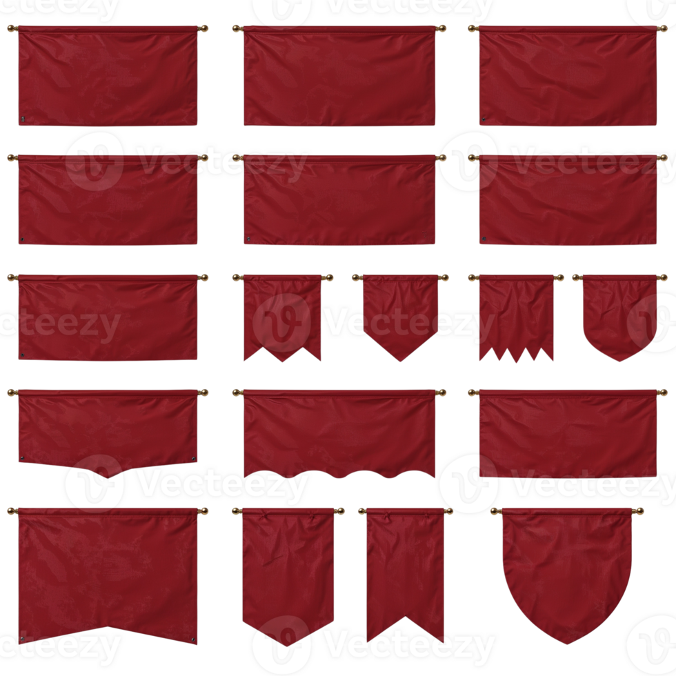 Diverse array of red fabric banners and flags for presentations and backgrounds in studio Pro PNG