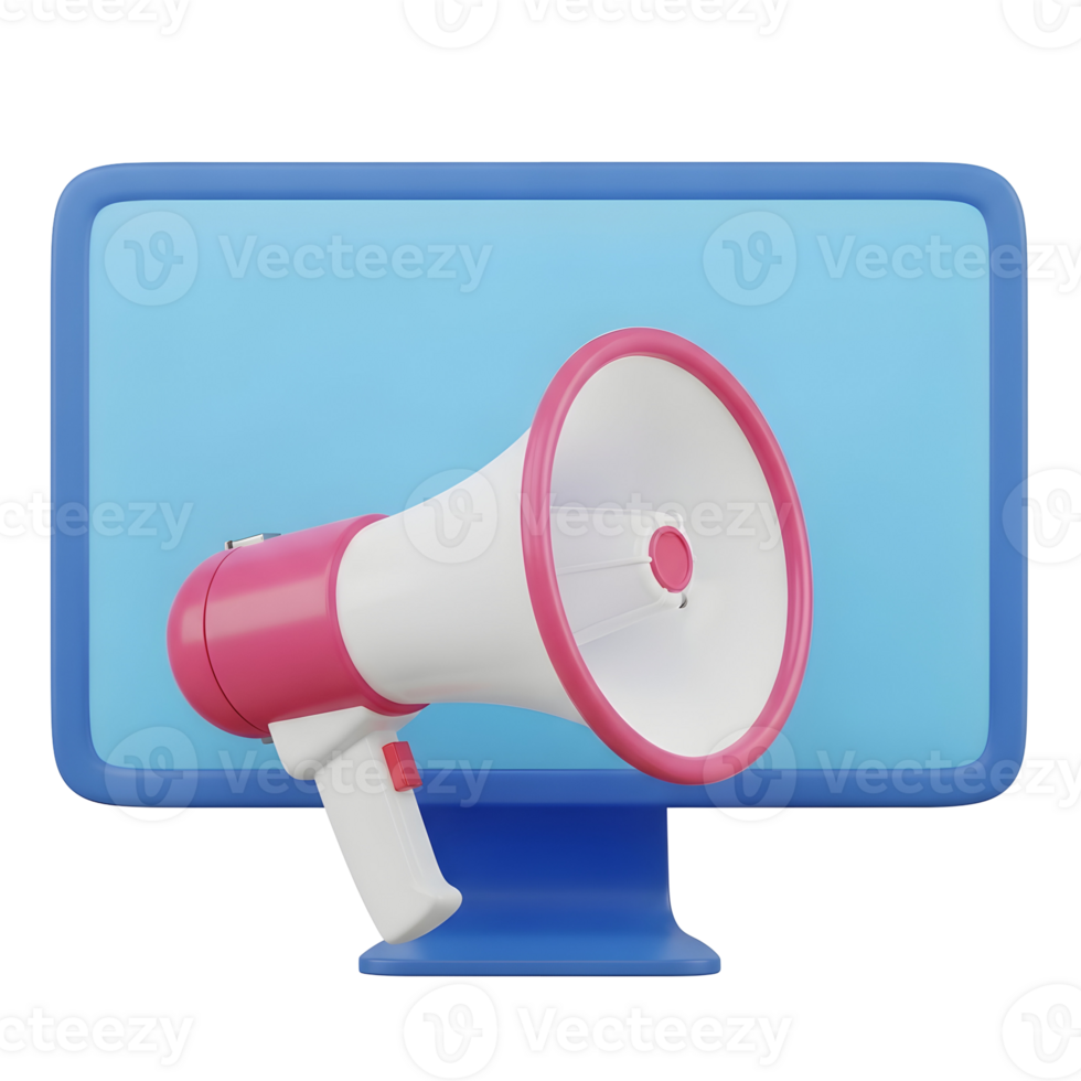A stylized image of a computer monitor with a pink and white megaphone in front of the screen display Pro PNG
