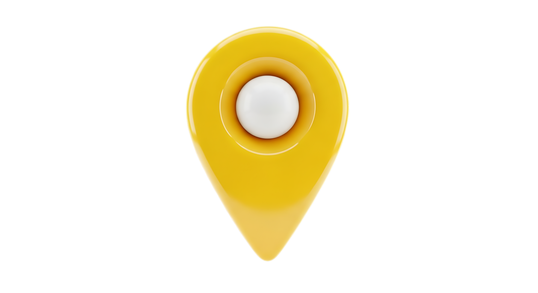 Bright yellow location pin icon with a white center isolated on a transparent background for navigation and mapping applications isolated on transparent background png