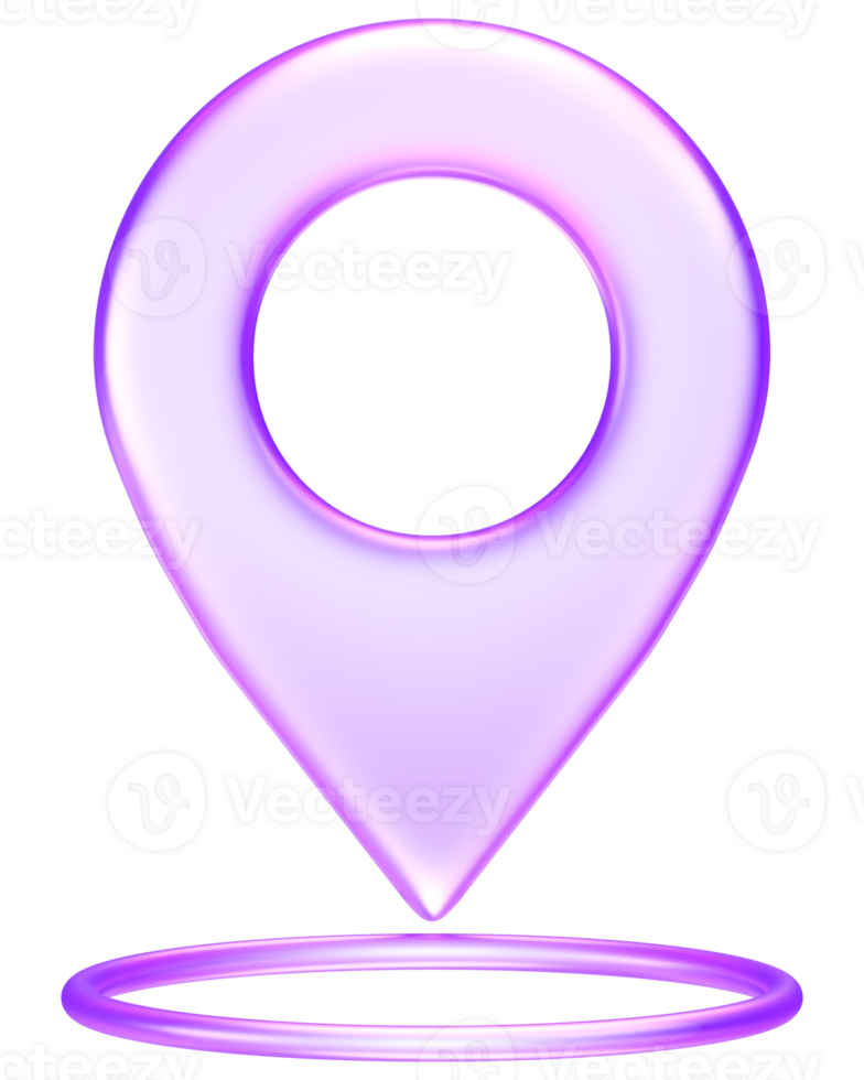 3D transparent location pin icon in gradient purple, representing map, GPS, navigation, or place marker in digital applications Pro PNG