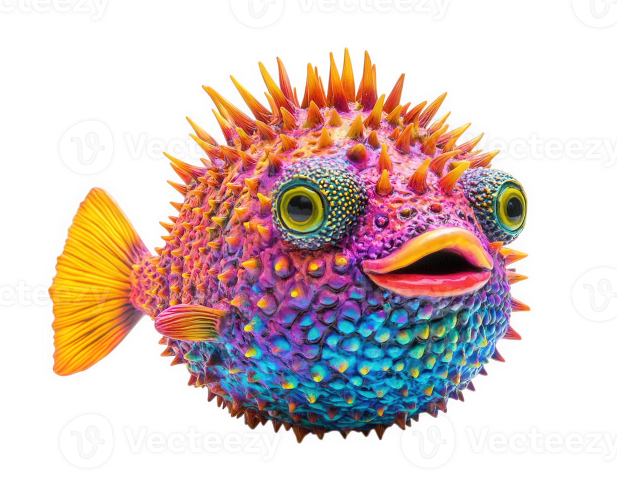 vibrant pufferfish with spiky texture and colorful patterns, isolated on transparency background, showcasing its unique features and playful expression Pro PNG