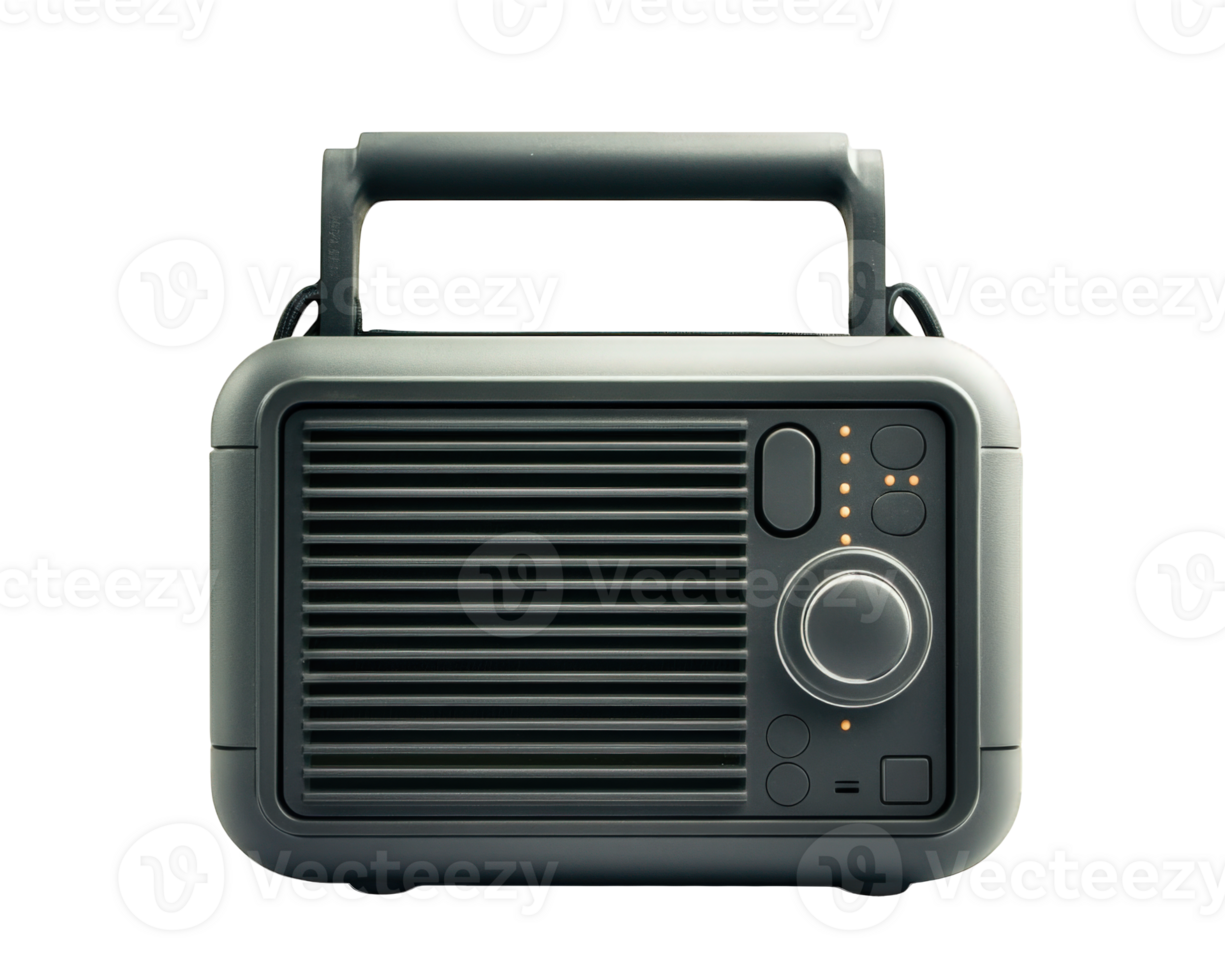 Compact portable radio with built in handle, perfect for outdoor use. Its sleek design and user friendly controls make it ideal companion for music lovers on go Pro PNG