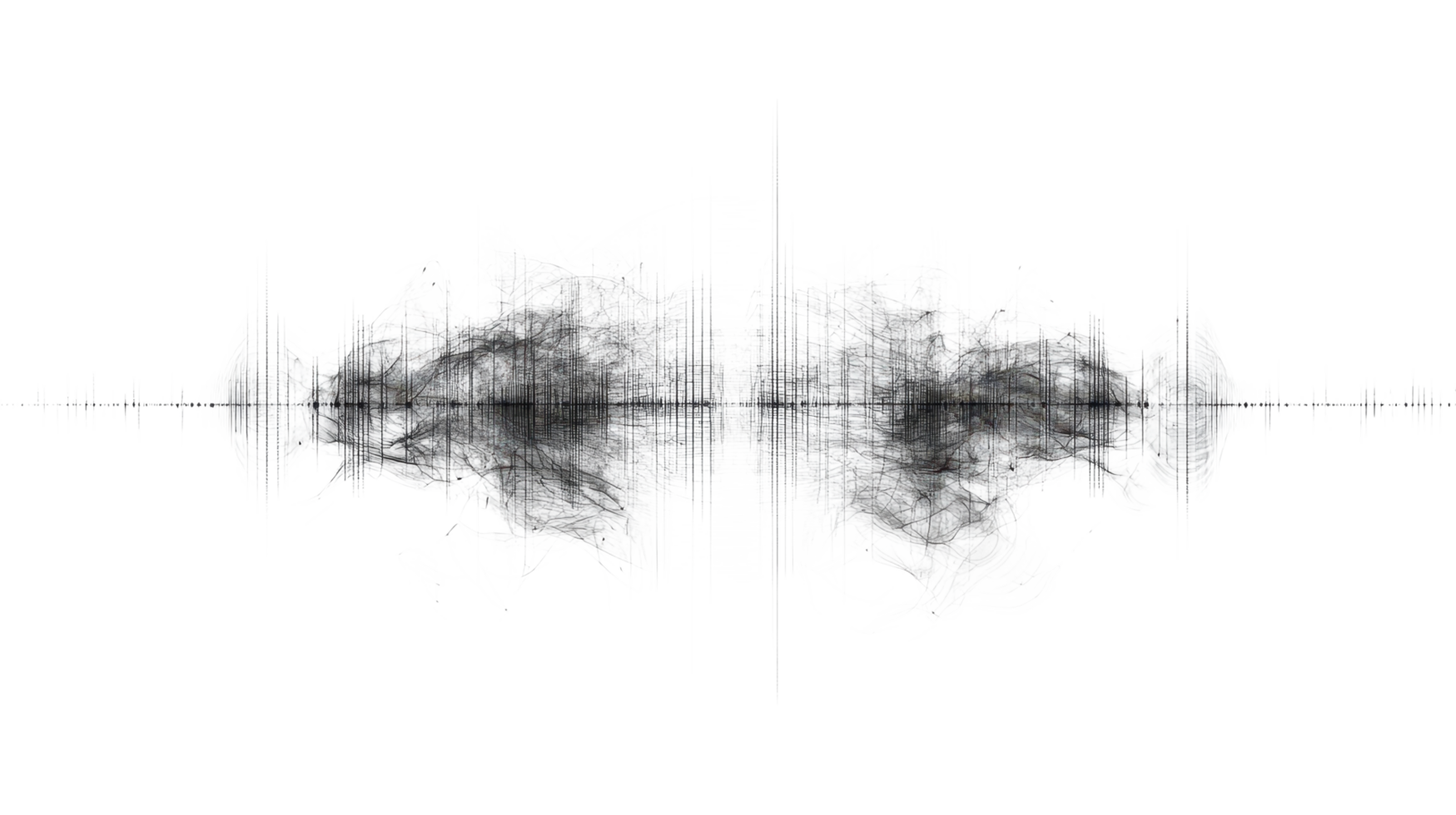 Unique abstract representation of soundwaves displaying intricate patterns and varying intensity in a minimalist style png