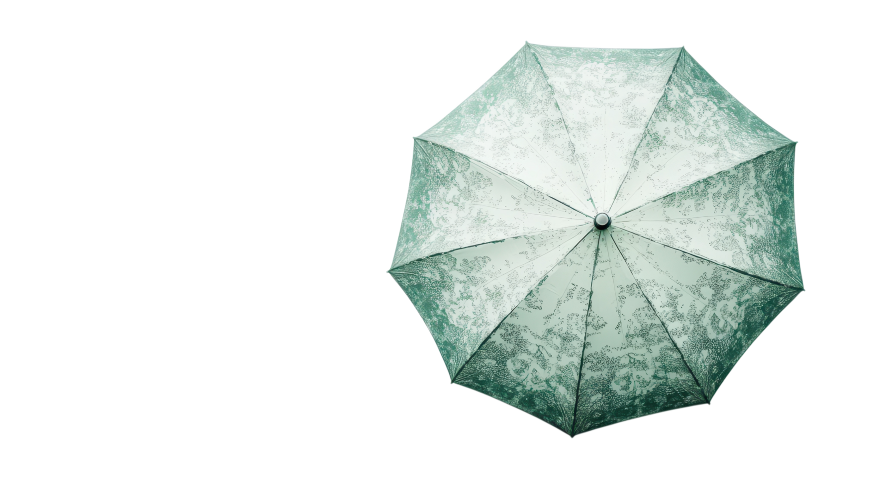 A green umbrella is displayed open on a white background, emphasizing its unique pattern and fresh design Free PNG