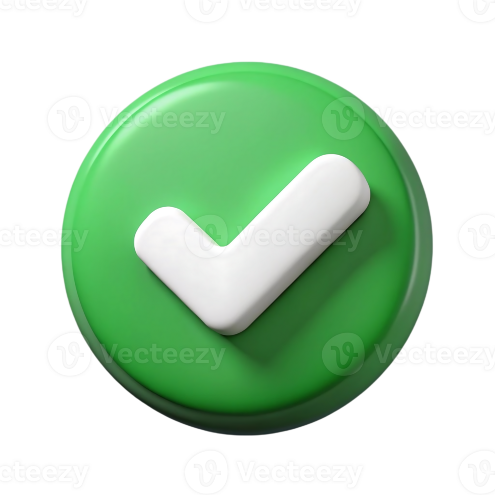 3d render of a green check mark button, symbolizing approval, confirmation, and successful validation isolated on transparent background Pro PNG