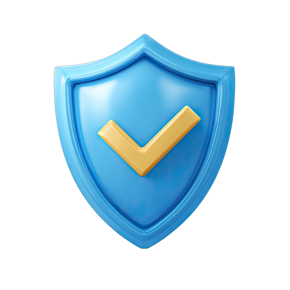 Blue shield with yellow checkmark icon representing security and verification concepts on transparent background Free PNG