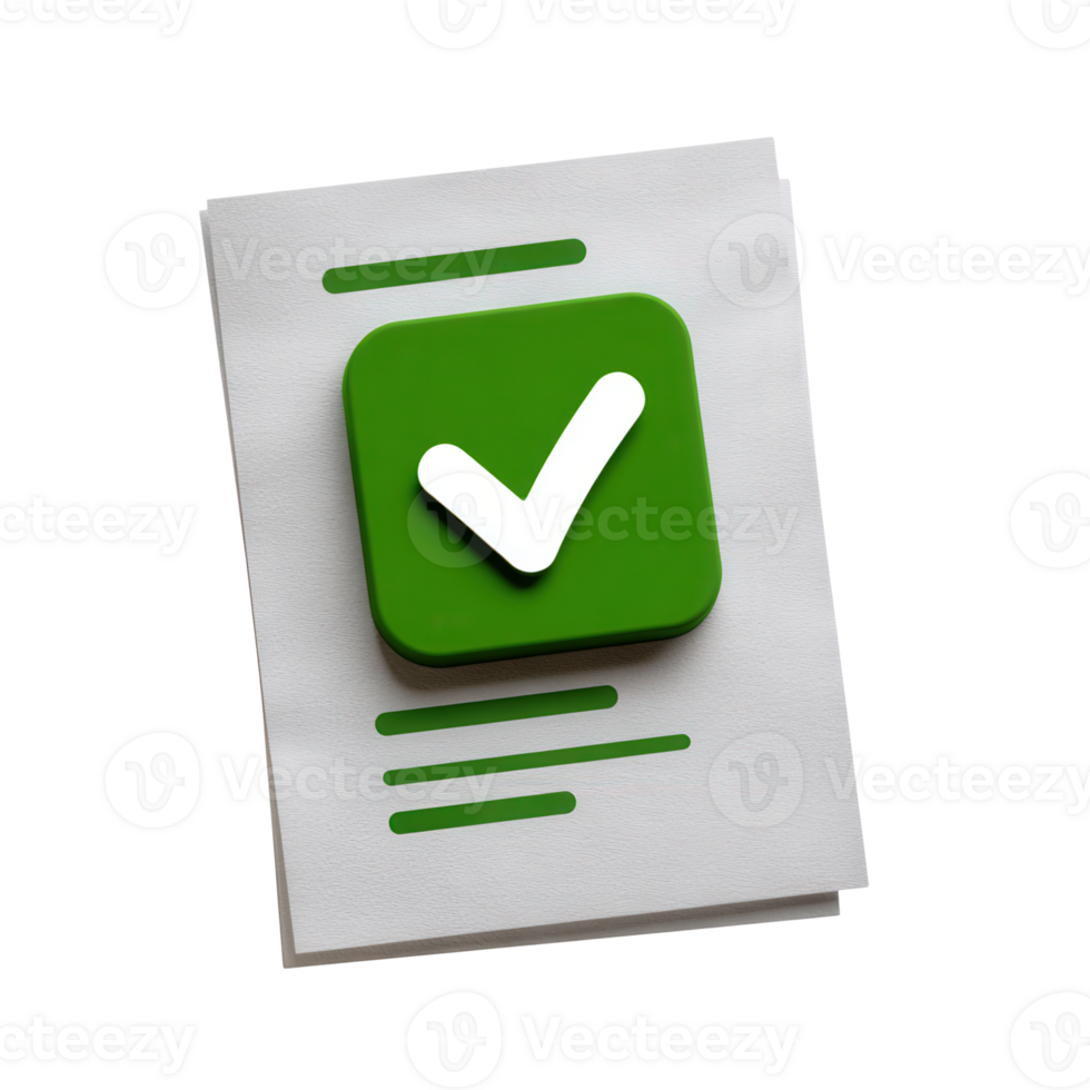 Green Checkmark on Document Symbolizing Approval and Successful Completion of Tasks and Projects Pro PNG